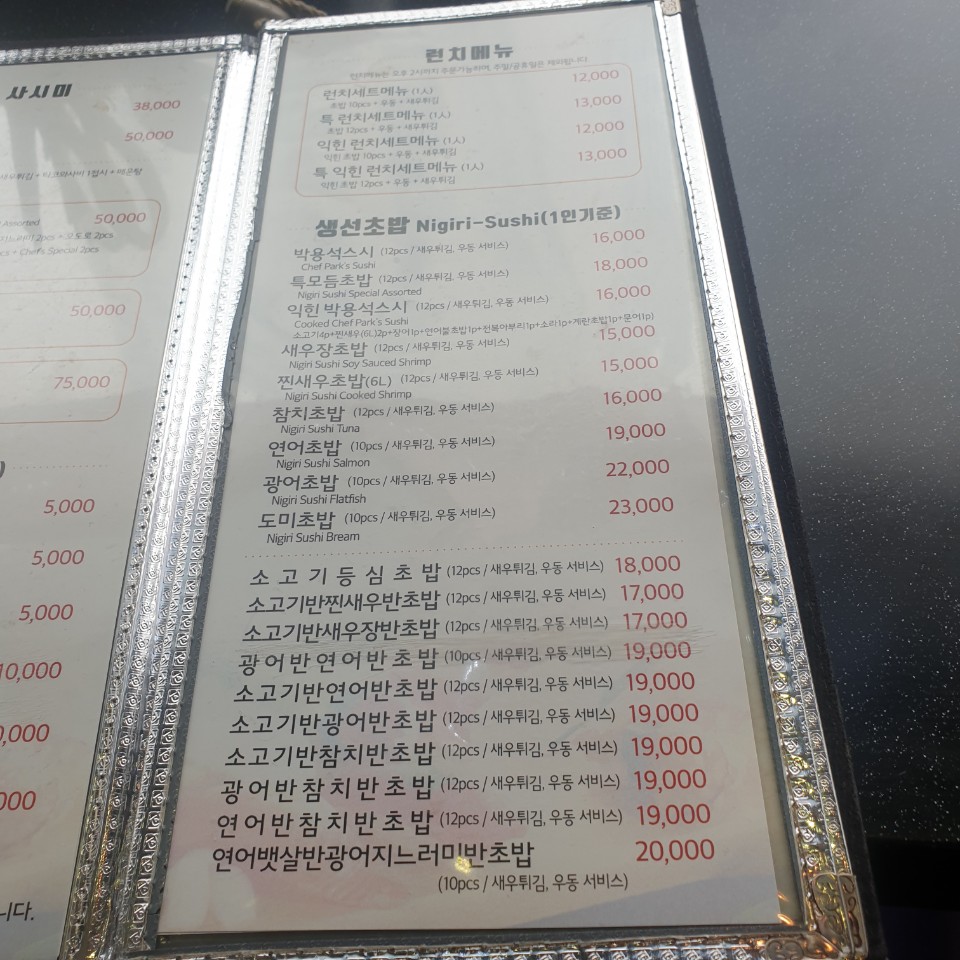 내가 비싼 횟감을 쓰는 오마카세를 좋아하지만? 그냥 보통의 스시도 좋아한다. 오마카세는 간장등 간이 다 발려서 나오는데 보통스시집은 본인이 간장을 찍어먹는 경우를 말한다. 가끔 평일에 휴가내고 그냥 아무것도 안하고 쉴 때 집에서 슬슬 걸어서 가기도 하는 집이다. 박용석 스시는 무조건 평일 점심에 가면 할인이 많이 되기 때문에 분명 가격대비 만족하리라 생각한다. 생각보다 오래된 집이고 오랜기간 운영해왔다. 차를 들고왔다면 빌딩 옆에 주차까지 편하니 참고하면 더 좋음