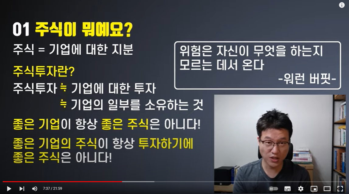 그러면서 이야기를 풀어가는데.... 책 내용과는 관련이 일부는 있지만, 주식투자를 하는데 있어서 본질적인 내용을 꿰뚫는 질문을 제시하고 거기에 대한 본인의 답을 알려준다. 빌드업이 매우 탄탄하며, 솔직히 나만 알고싶은 강의다. 내 블로그에 들어오는 사람이 몇이나 되겠냐 싶다.