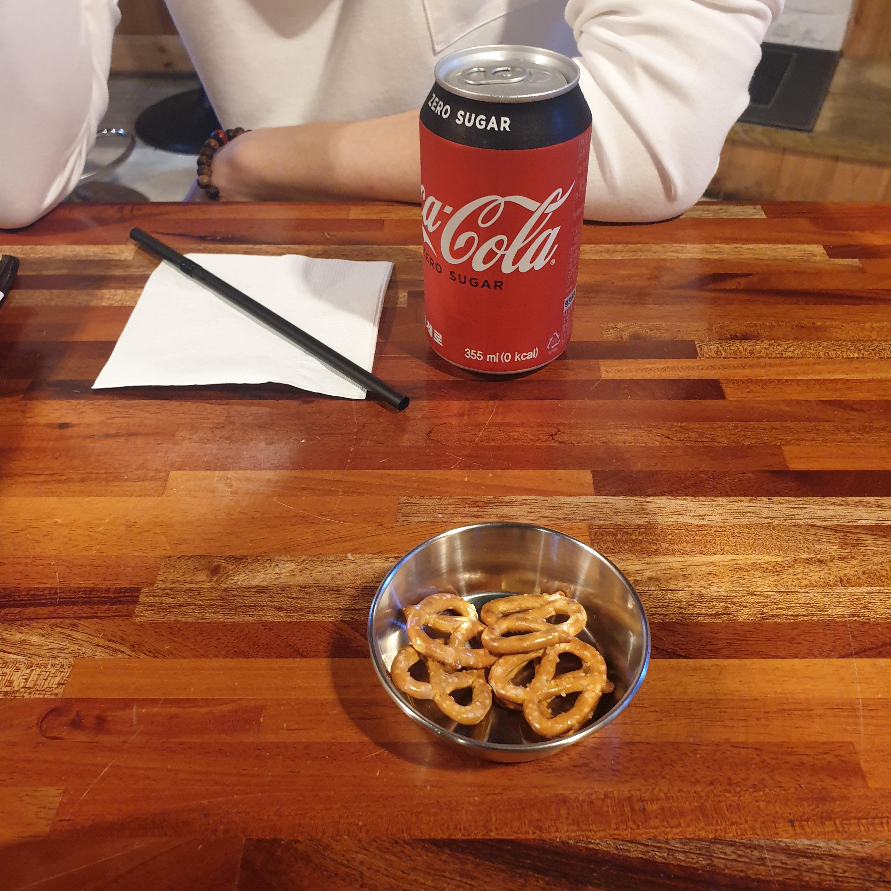 버거가 나오기 전에 우선 음료와 소금프레첼이 먼저 나온다.