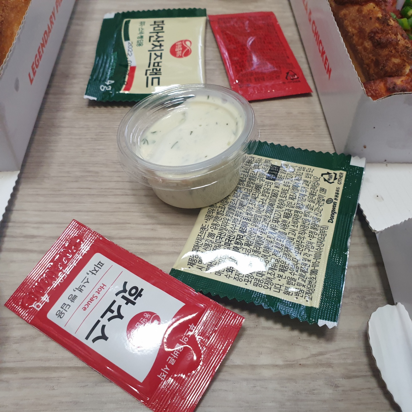 디핑소스는 약간 새콤한 맛이 났다. 마요네즈에다가 뭘 섞은듯