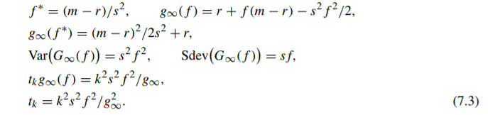 여기에 f값에 max가 되는 최고비율인 f*인 (m - r) / (s^2)을 대입하면