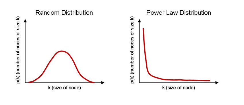 이와 같은 분포를 멱급수 분포(power-law distribudion)이라고 합니다.(위 그림의 오른쪽 모양의 분포)
