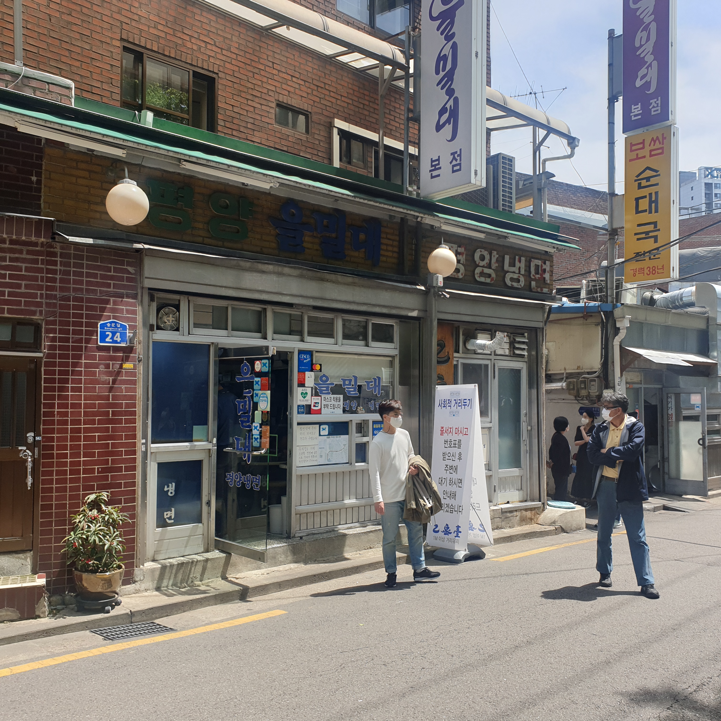 예전에 평양냉면에 한번 도전해본 적이 있었다. 함흥냉면과 다르게 굉장히 심심한 맛이 났다. 면요리를 좋아하지만 평양냉면은 내 생각보다 매력적이지 못하다고 생각하여 접은 적이 있었다. 심지어 미쉐린 가이드에 소개되던 평양냉면집이었다. 그 집만 그런건지 다른 집도 그런건지 잘 모르겠어서 다시 한번 확인해보고 싶었다. 새로운 음식 도전은 홍어빼고 언제나 환영이다. 마침 찾아보니 우리집 근처에서 슬슬 걸어가도 될만한 거리에 을밀대라는 유명한 평양냉면집이 있었다. 집에서 슬슬 걸어나와서 1시정도에 도착을 했다.