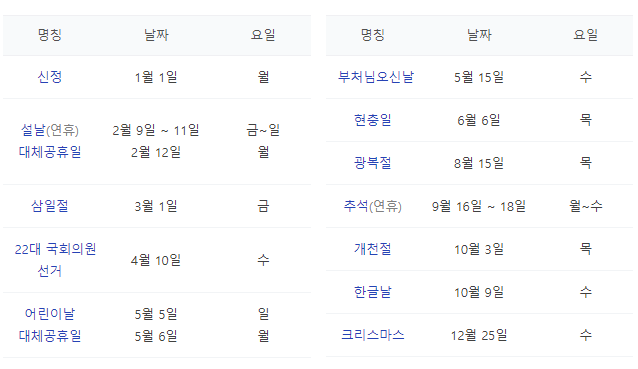 저는 새해가 되면 달력을 받자마자 연휴가 몇 개나 있는지 확인하는 스타일이에요.