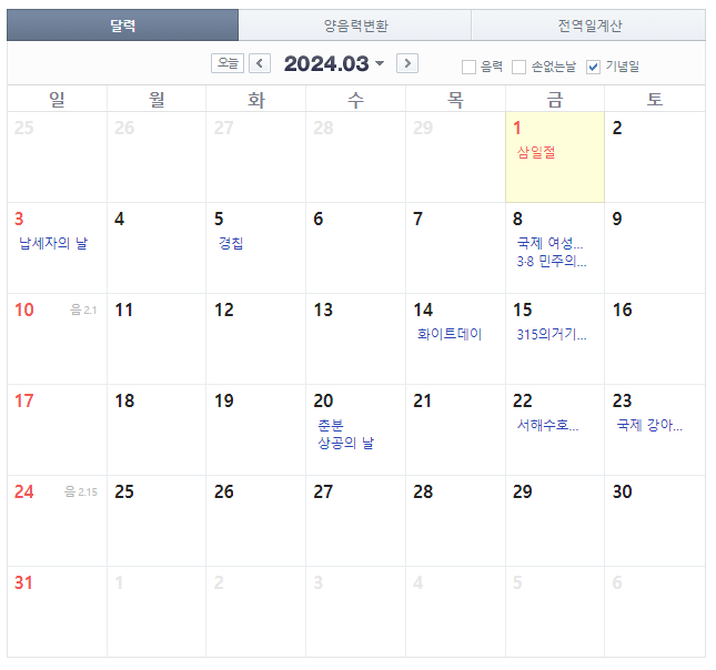 3월에는 삼일절이 있고, 주말을 활용하면 더 긴 휴식을 취할 수 있겠죠.