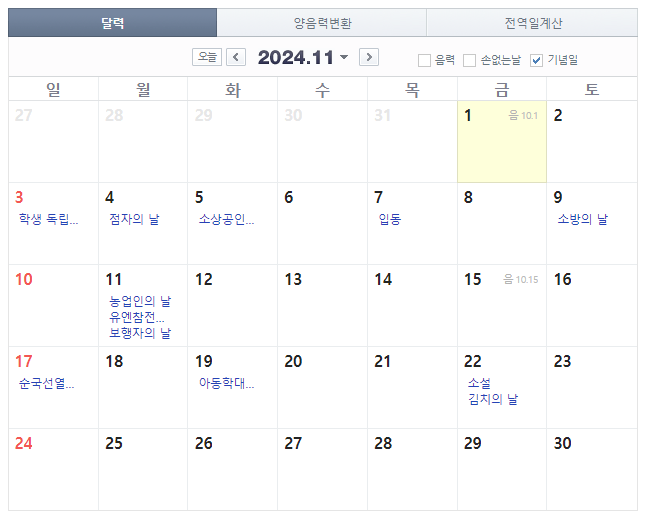 11월에는 크게 쉴만한 날이 없네요.